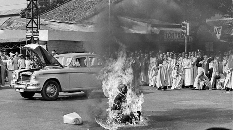 A foto tem origem de um vídeo-reportagem, que foi divulgado no mundo inteiro, causando comoção geral. O monge Thích Quảng Ðức, originalmente batizado de Lâm Văn Tức, foi o monge Mahayana, que durante uma manifestação na cidade de Saigon (atual cidade de Ho Chi Minh), Vietnã do Sul, contra a repressão político religiosa do governo de Ngo Dinh Diem, ateou fogo em seu próprio corpo em um processo de autoimolação em 11 de Junho de 1963, e ficou pegando fogo, em meio a sua calma – parado, meditando, enquanto seu corpo arde nas chamas da guerra.