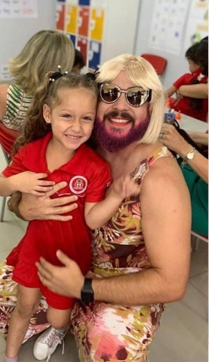 Pai viúvo se veste de mãe para participar de homenagem do “Dia das Mães” na escola da filha