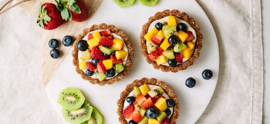Tortas de frutas veganas cruas – Uma deliciosa receita de torta de frutas sem assar com crosta de amêndoa, creme de caju e coberta com muitas frutas frescas e coloridas! Receita de Simple Veganista. Tempo: 30 minutos Rendimento: 3 Tortas  INGREDIENTES 1/4 xícara de kiwi , descascado e picado 1/4 xícara de morangos , picados 1/4 xícara de mirtilosContinue Reading
