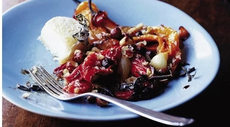 Salada de pimentão assado e alho com avelãs